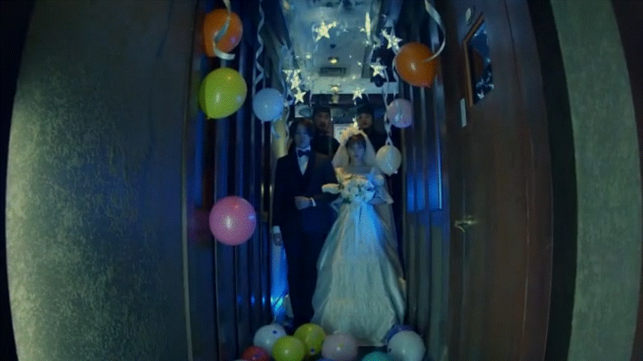 She then finds the flyer and complains that no one will come if they see this because it has no concept. Ji Dan says that no one will come because the location is bad, to which she disagrees, saying it’s all about the concept! He tells her to think of a concept then, to which she puts forward having weddings there… We then get a rather creepy picture of the two in wedding outfits.