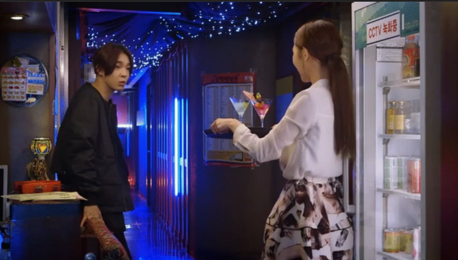 Ji Dan asks if she really brought them in and she responds by saying to put in two hours for them, even though they only asked for 30 minutes. She then goes into the refrigerator and he looks at it shocked, stumbling over his words to ask her where the drinks came from. She calmly says that they were delivered a little while ago and then starts to nag that he doesn’t know how vendors work, or the lights and asks if he really is an employee.