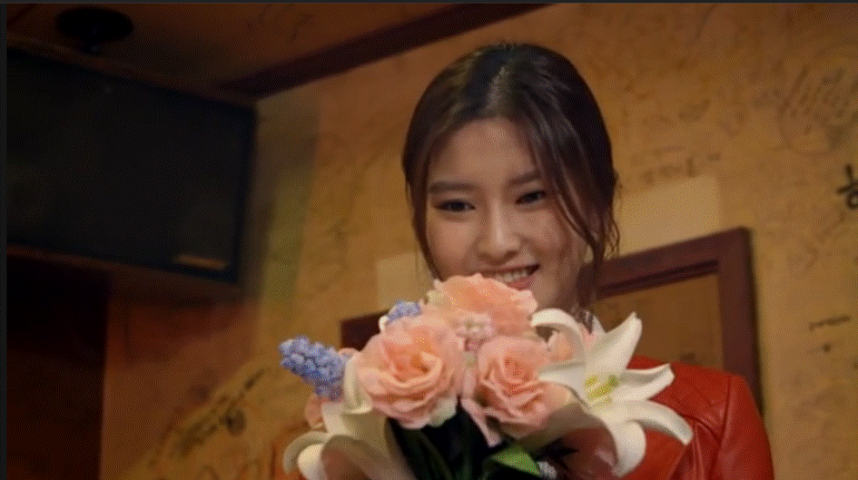 While he is singing, we are sent into a cute flashback of him buying flowers for the
