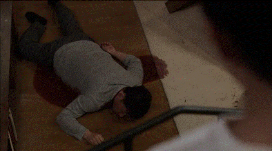 The lock on Hyun’s door opens and after a few moments Hyun opens the door. He walks out to see his father, dead on the kitchen floor.