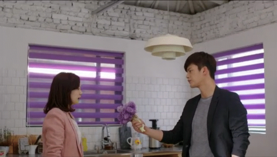 While the team are still making their way to YoonJi, we see her opening her door, a man walks in and gives her purple hyacinths. YoonJi hears her phone vibrating and she