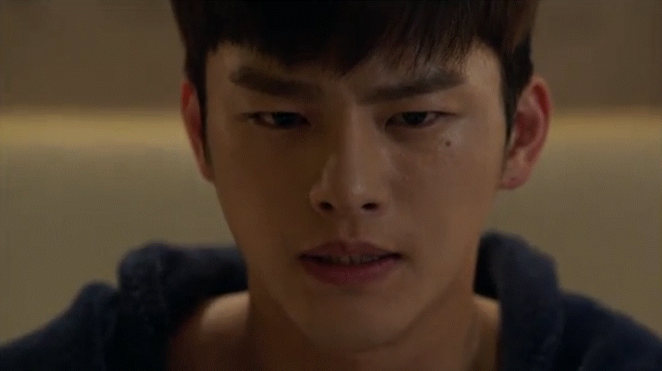He dreams of that final scene, where JoonYoung walks out of the bathroom. This time we see him mouth something, however Hyun can’t hear him. JoonYoung walks closer to him and says,
