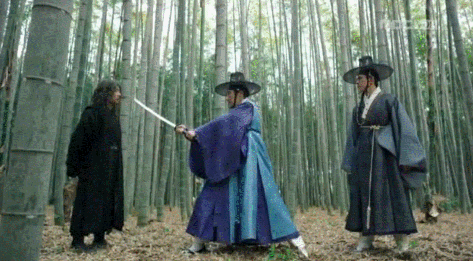 SungYeol is prepared to fight all four men and it is shown he is a skilled swordsmen. However, JungHyun tells him to stop, knowing that they are guards. He asks the captain why he is following him.
