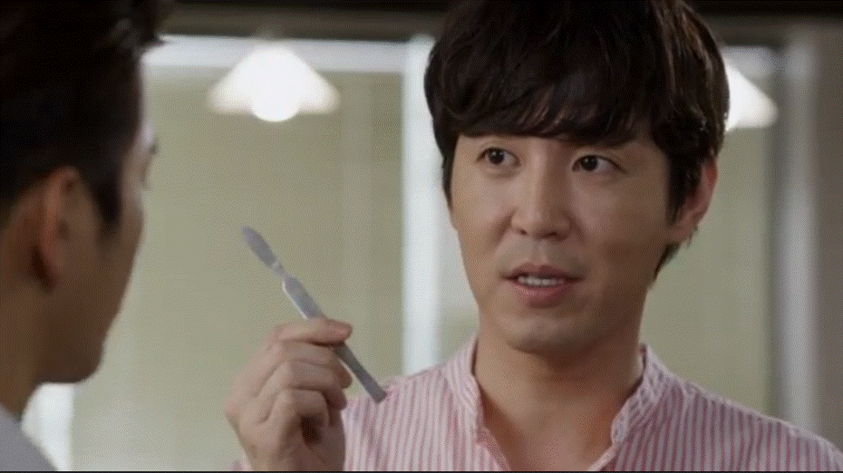 Hyun freezes when he senses something coming towards his neck and then turns. JoonHo explains that the tags are still on his shirt, which he uses the scalpel to cut off. Much to Hyun’s relief (and mine!), JoonHo says that he has never used the scalpel on anyone and doesn’t plan on doing so.