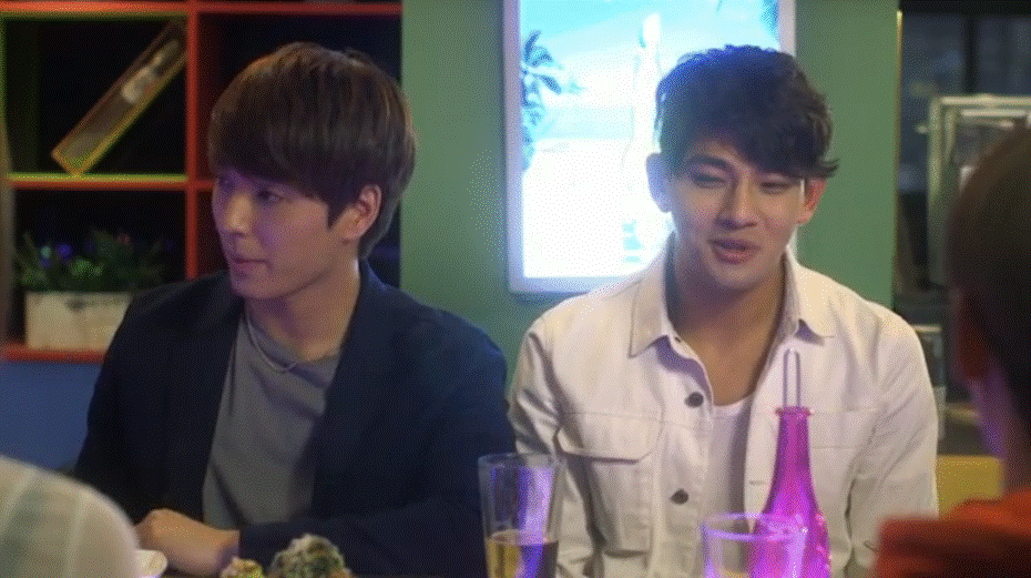 ShiHyun shakes MongRyong, accusing him of faking his drunkenness just to bother him. The rest of the group all groan ‘you sure talk’.