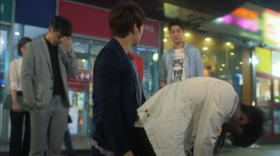 Outside the bar, MongRyong saunters into the road yelling ‘taxi’. Thankfully, ShiHyun pulls him out of harms way when a motorbike comes towards MongRyong. In saving