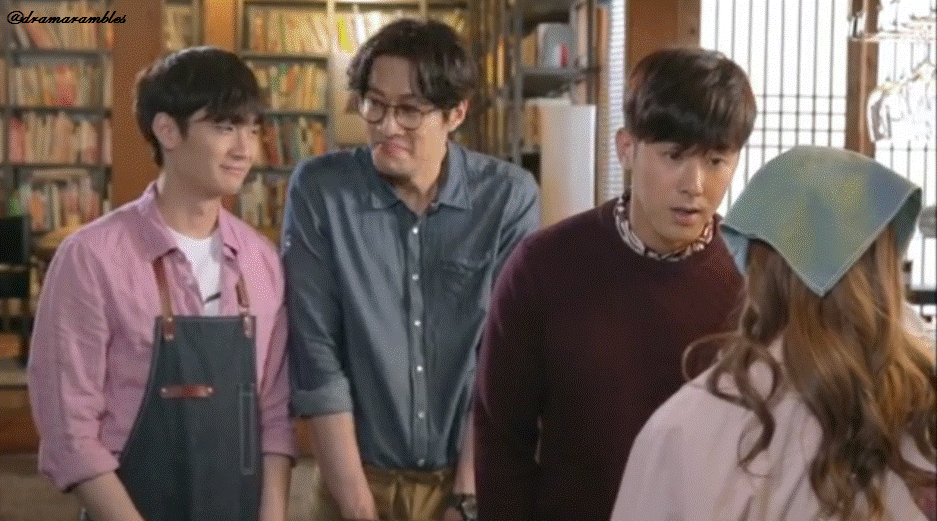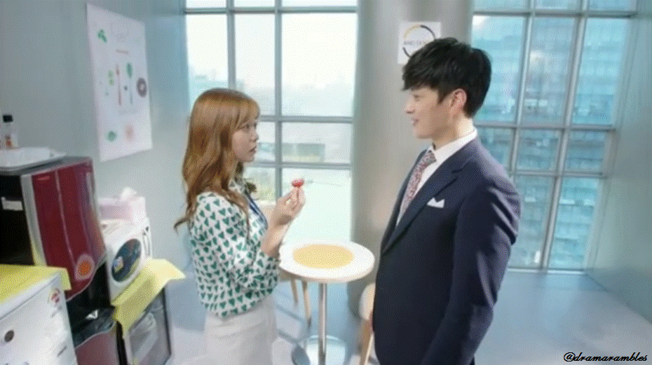 While SongAh is savouring a bite of a strawberry, DoekHee carries out a tray of coffee, and isnreplaced by none other than Kevin Joo. Oblivious to this change, SongAh holds a strawberry over her shoulder for DoekHee, of which Kevin has no qualms of taking a bite of.