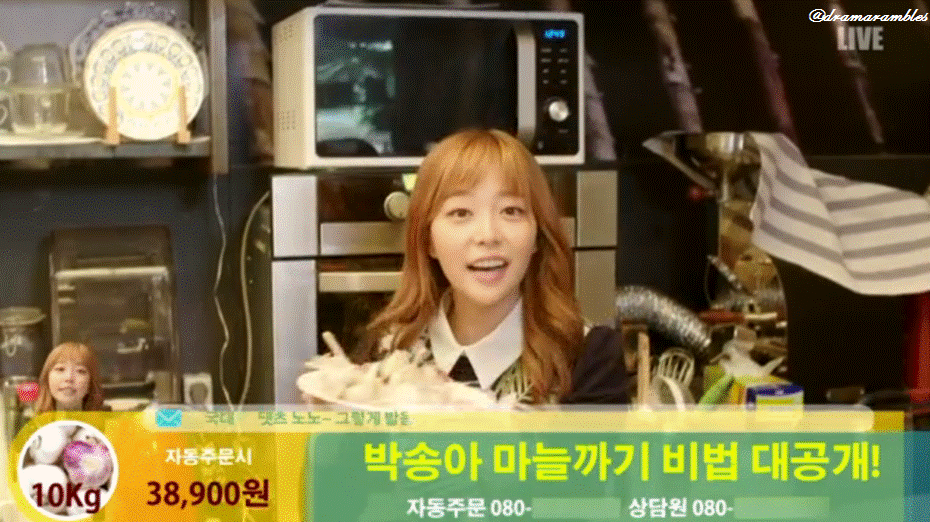 GookDae breaks up the conversation by ordering her to peel garlic. On the counter, he bangs down a pot of garlic cloves. SongAh picks one up and tells him she saw how to cut them once on television. The screen is then transformed to ‘FLada shopping’ where ‘Park SongAh’s secret garlic peeling tip is being made public’.