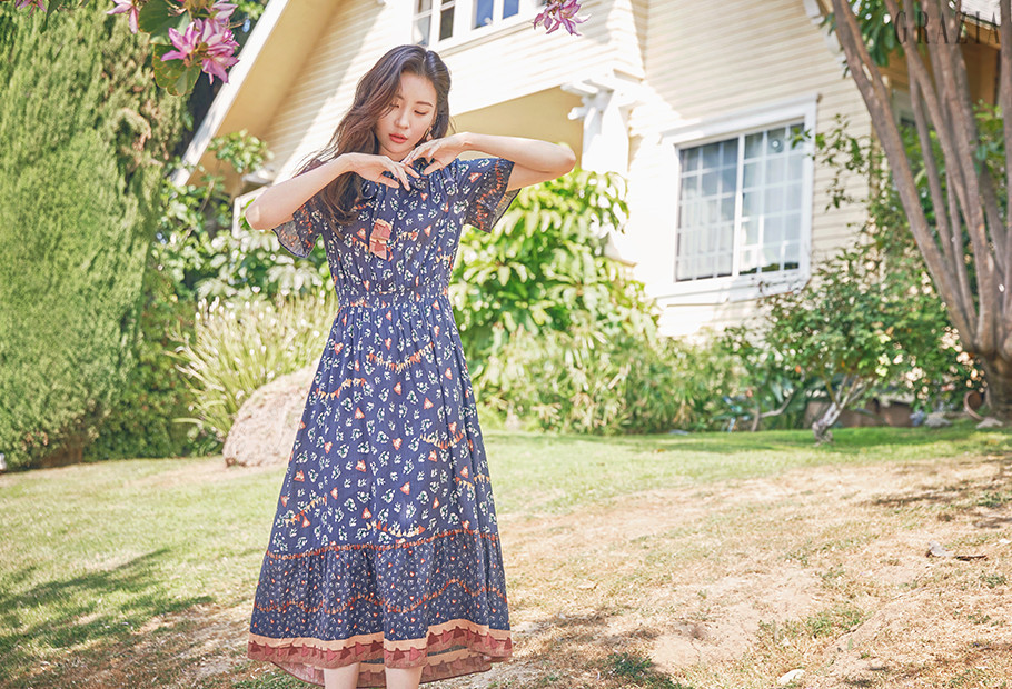 This is such a pretty photo. The dress, which has a lovely colour scheme and pattern, comes from Thursday Island’s S/S collection (£131.62 – 195,000 won).