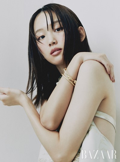 Jin Ki Joo is wearing a knit top and dress from Prada. And the ring is from Portrait Report.