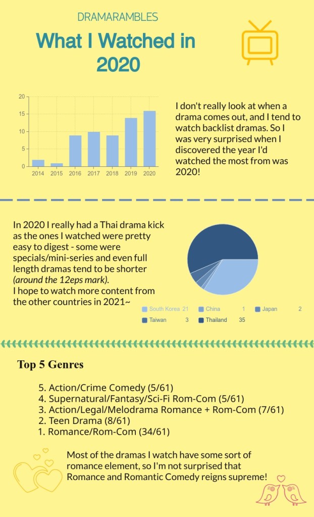 If you’re upset or disappointed in how much you wanted to watch or how little you accomplished in 2020, remember that you saw it through and that’s something to be proud of! ♥