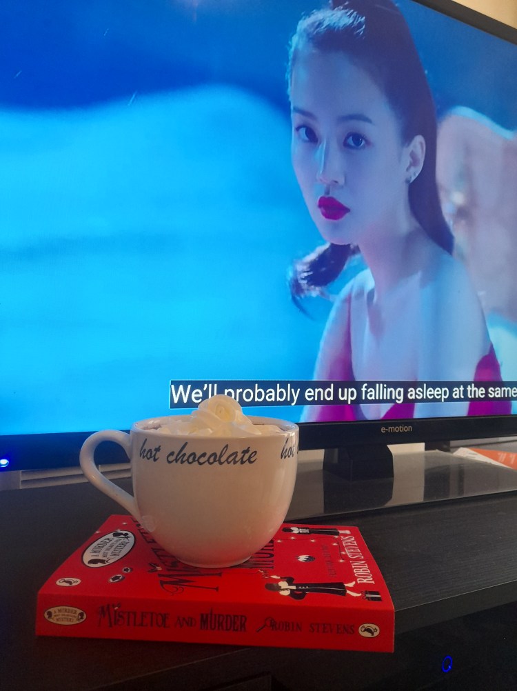 Before I got put onto a station inside the testing room (where I had to sit through the entire Frozen film) I read some Mistletoe and Murder (11-94). I continued it on my commute home and read up to page 114. Once I was home, I did some chores, had tea and then watched kpop videos. I did end up reading a little more of Mistletoe and Murder (114-157) before my dad got home and we sat and talked. I got him to listen to kpop ballads and he said I didn’t play one bad song – yeah, because I have good taste~ haha