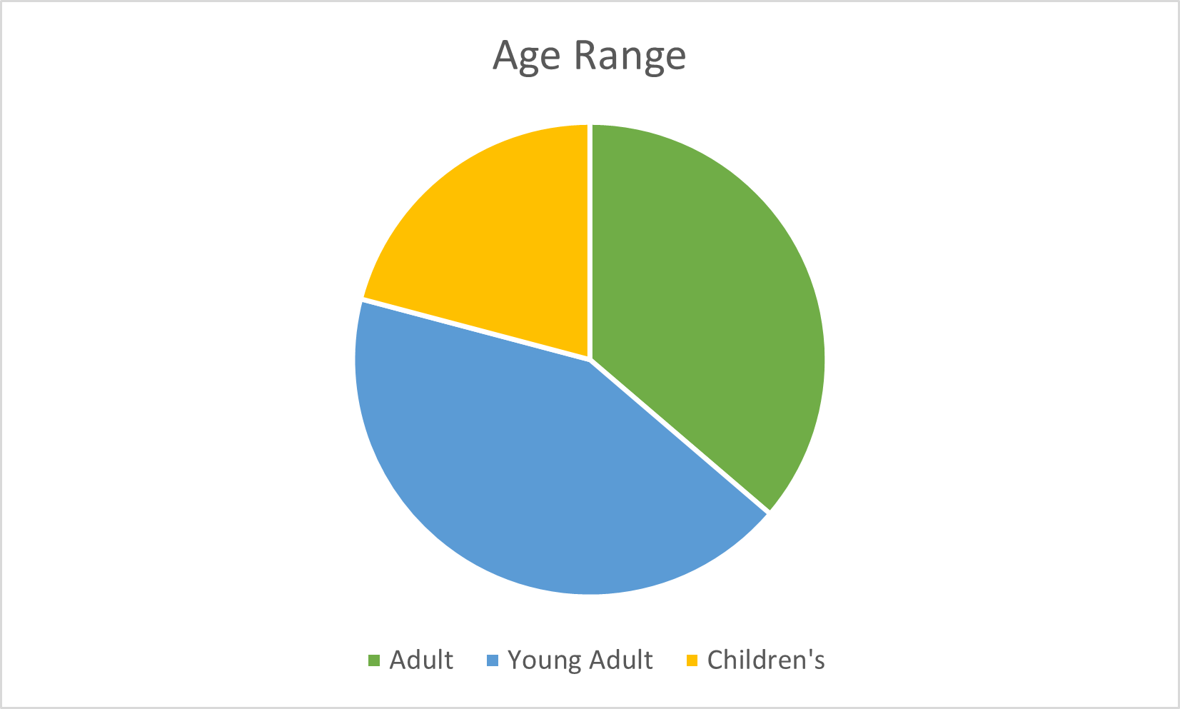 In 2020, I had a lot less children/teen books. And, while I do think I have more of this age range, I just think more books should be in this category rather than in young adult. Quite a few books I looked up that have main characters that are 16 and even younger were classified as YA… these are children and attaching ‘adult’ to these ages makes me feel weird. Which is why I’ve changed their age range for my own personal reference and has boosted the numbers.