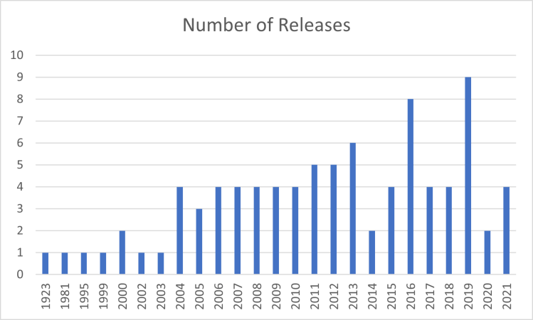 The first time I did this post, the highest number of unread books was from 2016… and it barely got beaten by 2019 this time. Next year, there are going to be no 2016 releases! (maybe :p)
