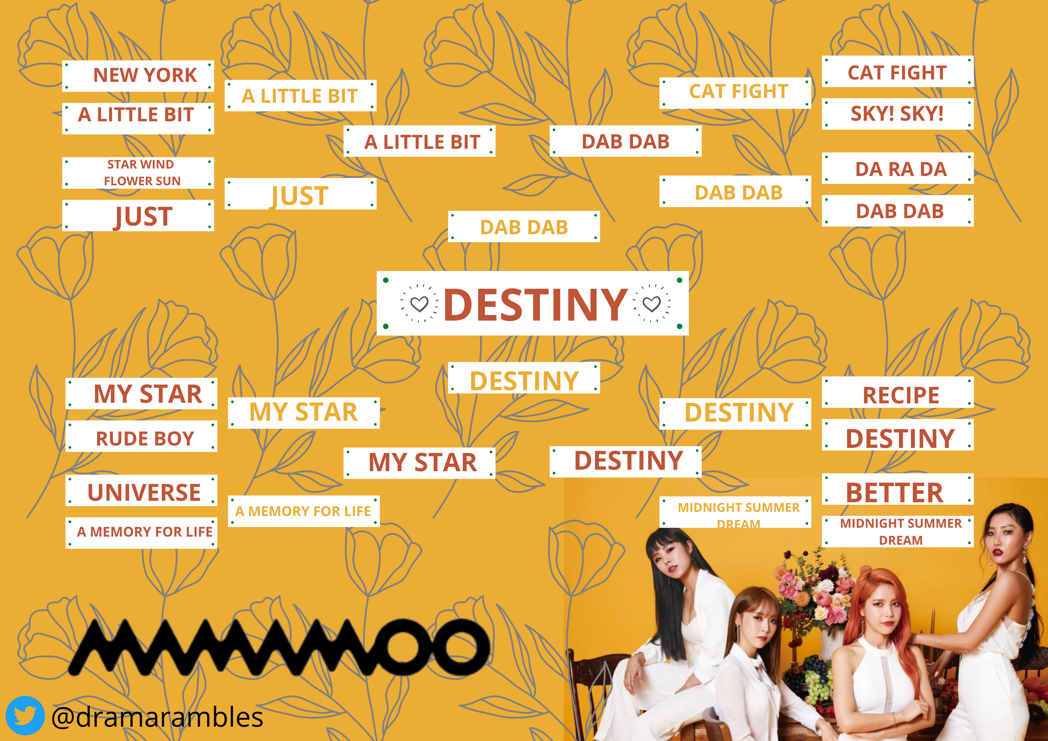Despite having listened to Mamamoo for a while now, I had not really given Destiny a proper listen and thanks to this it’s become a new favourite song! ♥