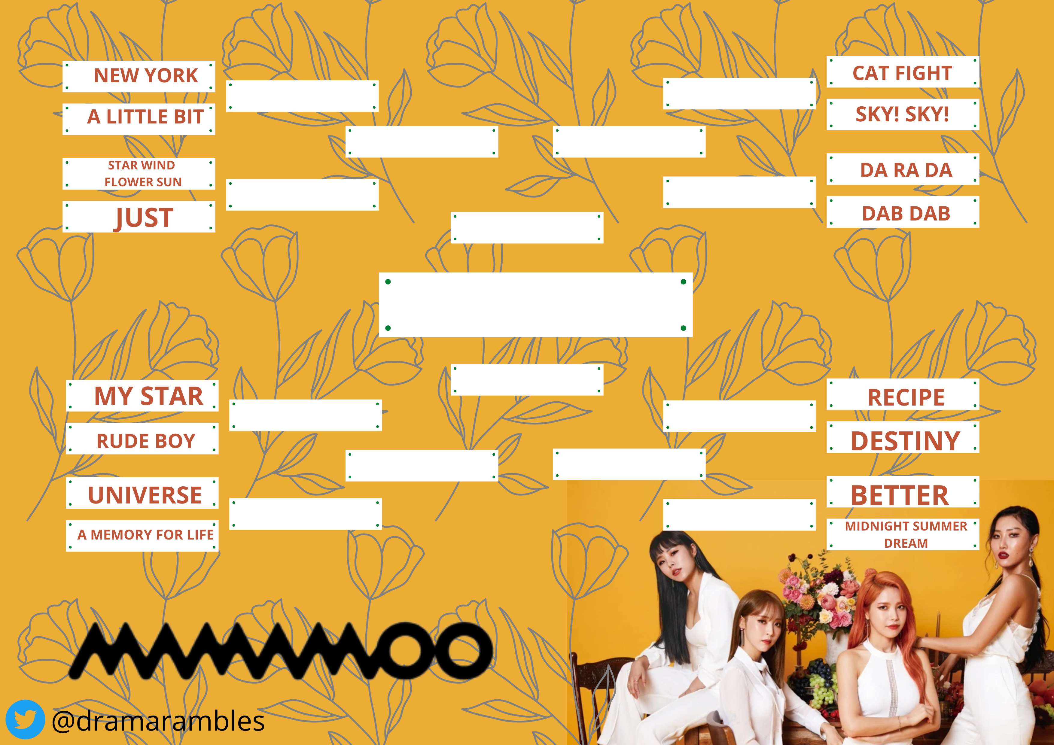 This bracket game is mostly made up of B-sides and there are some great ones such as A Little Bit, My Star and Dab Dab (Moonbyul+Hwasa).
