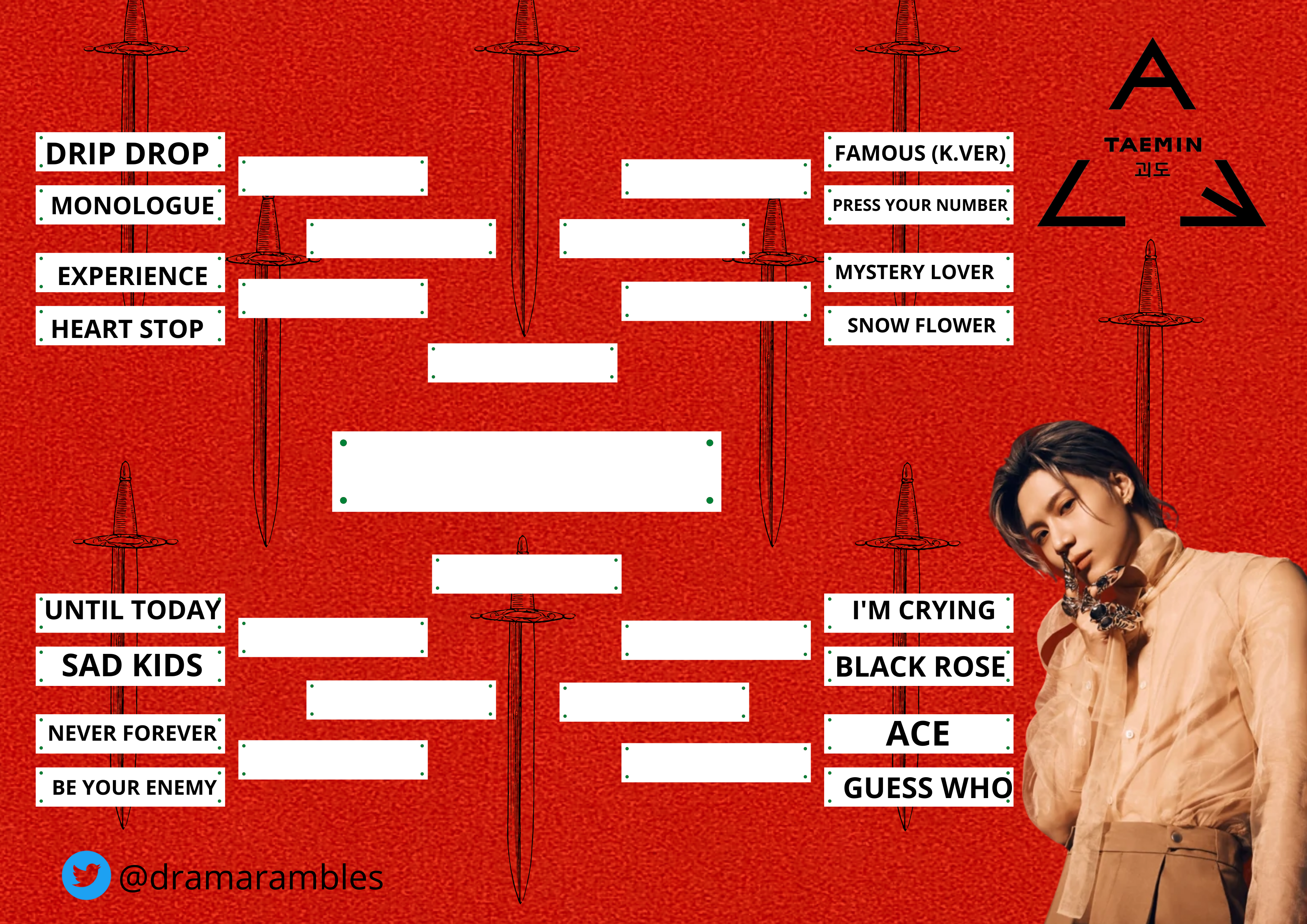 Taemin is one of my favourite singers. He’s a fantastic performer, but often his vocals aren’t praised enough! There are songs I love more in his discography, however, when I knew all the songs in the game it was pretty obvious to me that Monologue was going to win – even when it came up against Black Rose which I also love.
