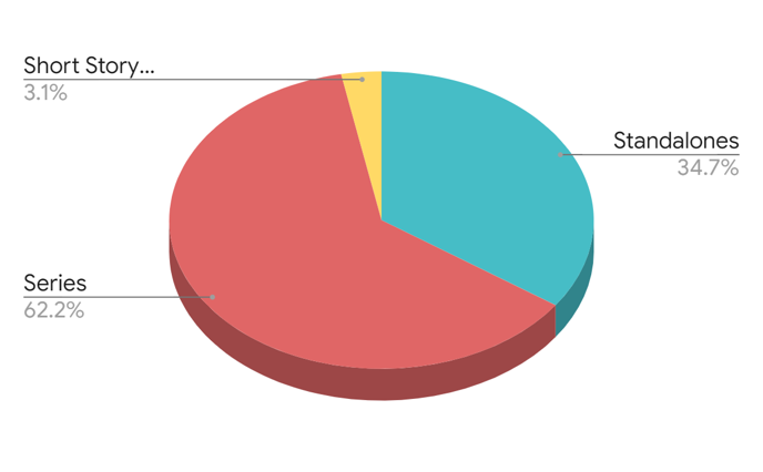 This makes it seem like books series don’t make up the majority of my tbr. Here, I’m just looking at how many series (for perspective the 61 series on my shelves are made up of 104 books).