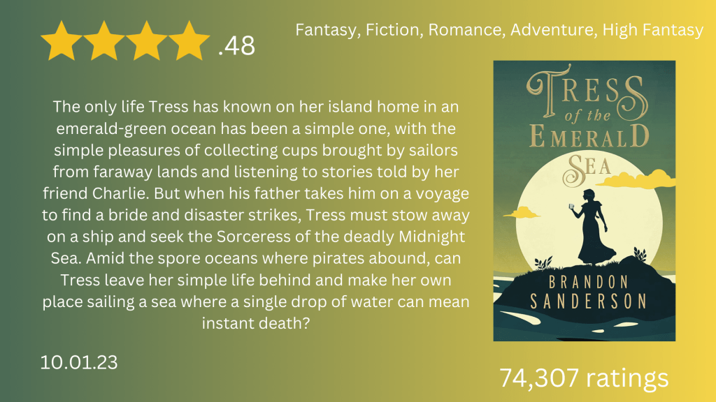 Everyone I’ve heard who has read this book have loved it and I think it’s the most well received of Sanderson’s “Secret Projects” so far.