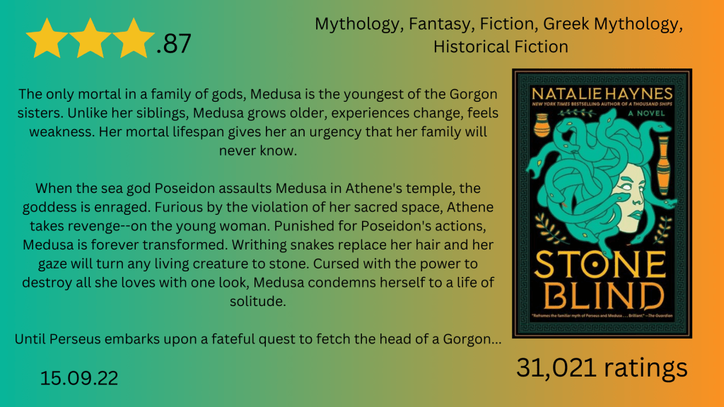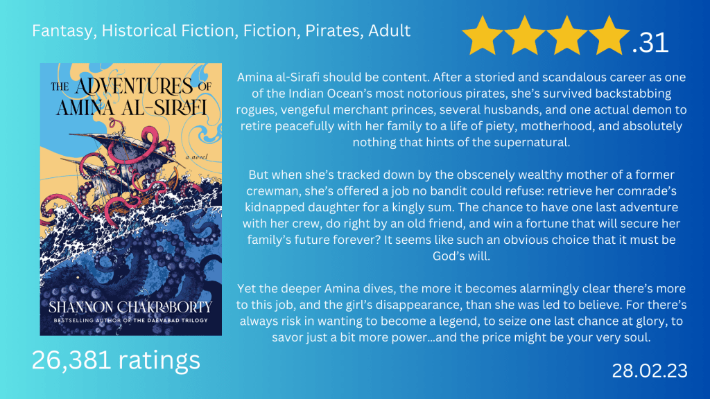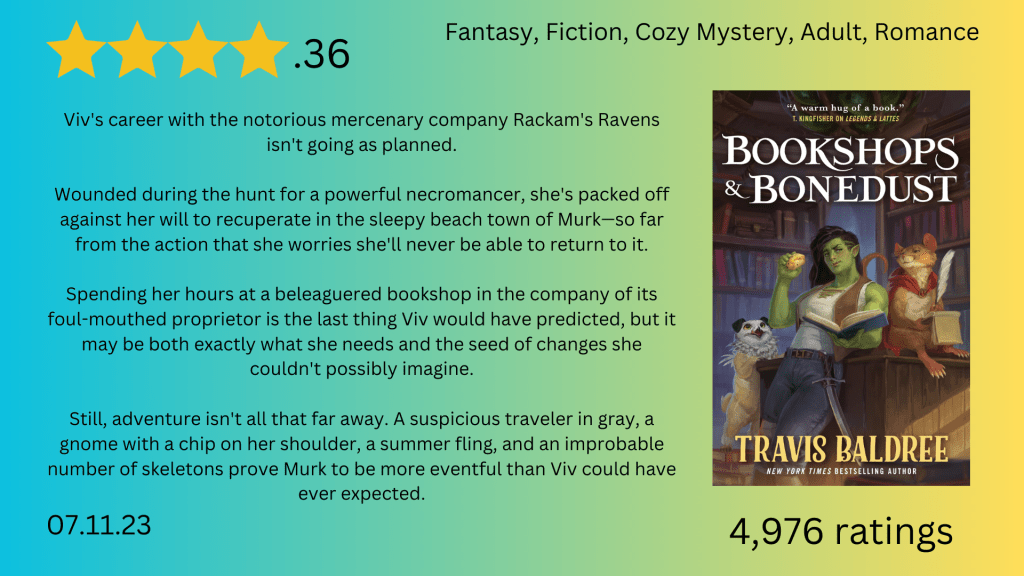 While, some books have a higher rating than some on here, or even less ratings – such as Bookshops & Bonedust and Starling House – I think the kinds of people who vote in the Goodreads Choice Awards will vote for them.