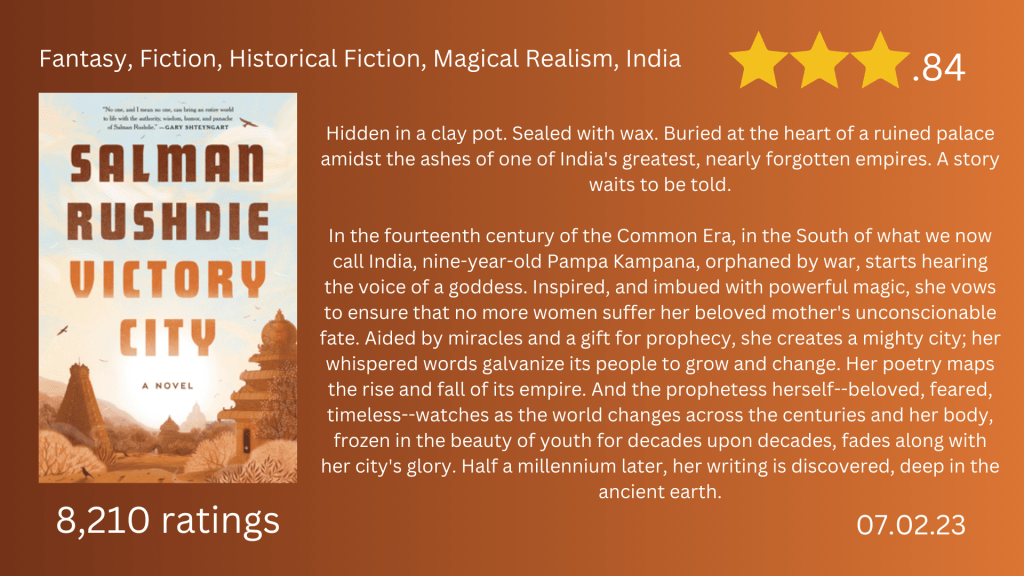 The Goodreads Choice Awards 2023 is upon us! And I thought it would be fun for next year, to read all the books in the Best Fantasy category and do my own voting/ranking at the end. For several years now, Emily from BookswithEmilyFox has done this and I really enjoy her content, so thought it would be fun to try as well.