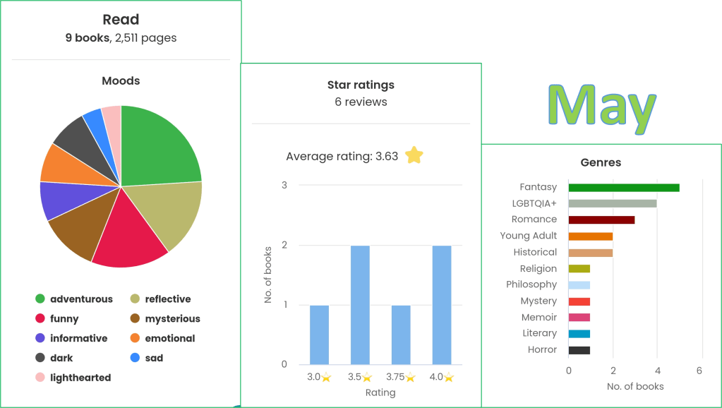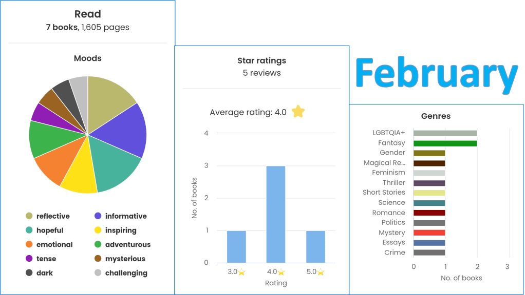 Just as an fyi, there are some books, films or series that I didn’t rate. This doesn’t necessarily mean that I didn’t like it, it’s mostly because I don’t feel that I’m the target demographic to rate the book properly; or that I don’t feel comfortable rating it – i.e. it’s a memoir.