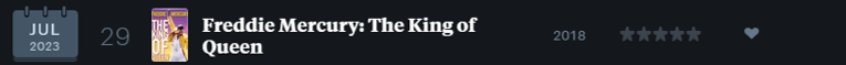 I really like Queen and Freddie Mercury due to my dad, so when I saw that this was on tv and I had nothing else to watch, I gave it a go. Unfortunately, I would not recommend this documentary, as the people on it just seem out to talk about themselves and say a lot of things that I found uncomfortable inappropriate.