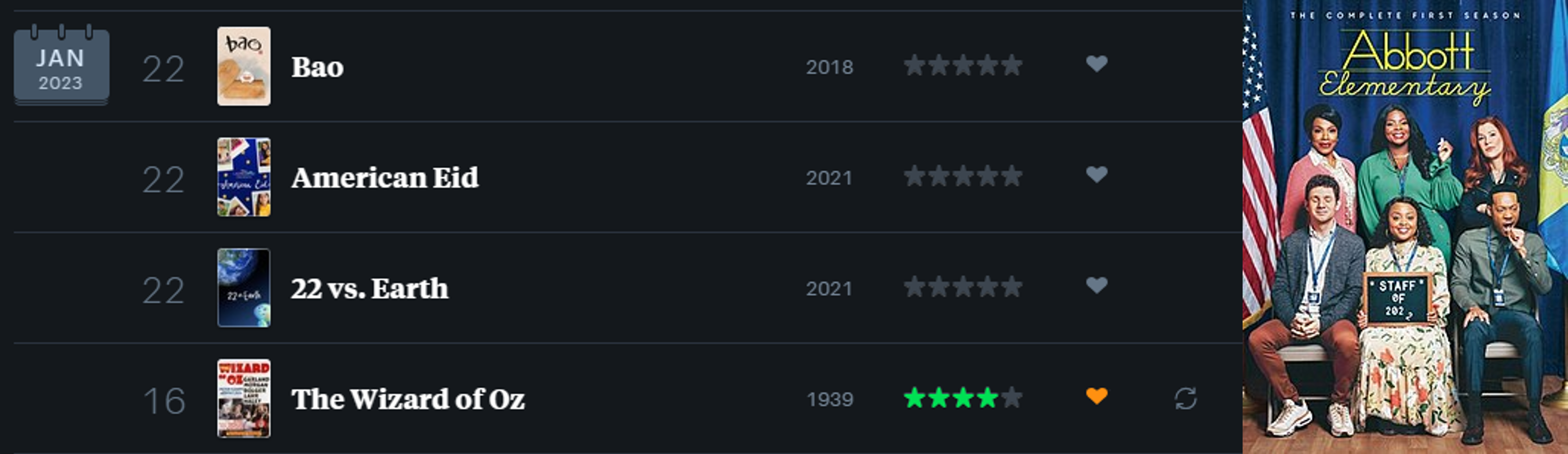 I only have stats for the films I watched in 2023, due to keeping track on Letterboxd. I’m going to look into ways to track series and data, but not sure what the best way to do that is. If you have any recommendations, they would be highly appreciated!