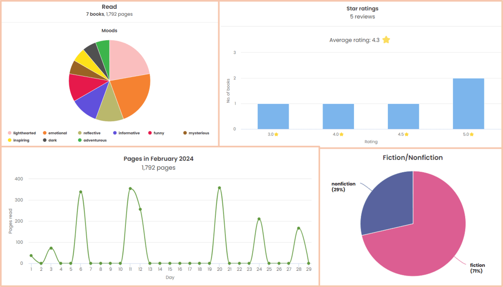 As I used my stats from StoryGraph, I also linked each title to it’s page on the reading tracker as well.