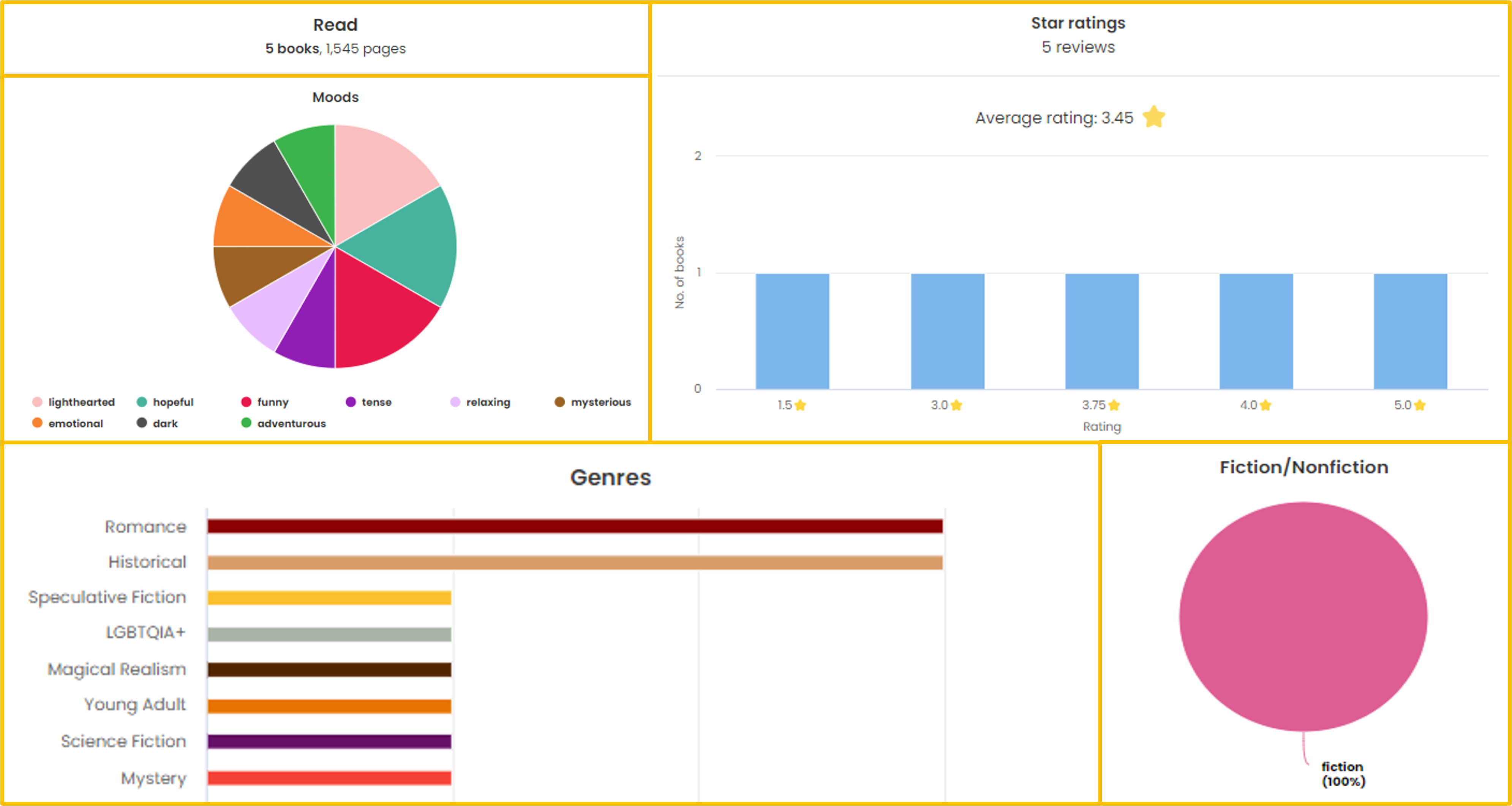 As I used my stats from StoryGraph, I also linked each title to it’s page on the reading tracker as well.
