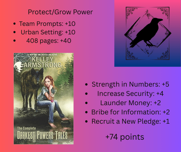 Instead of setting my cap for one family, I decided to just mood read and then randomly assign a family to that book and then randomly decide if the points are to protect/grow or attack. Any maths errors are solely my fault, but fingers crossed I added and subtracted correctly.