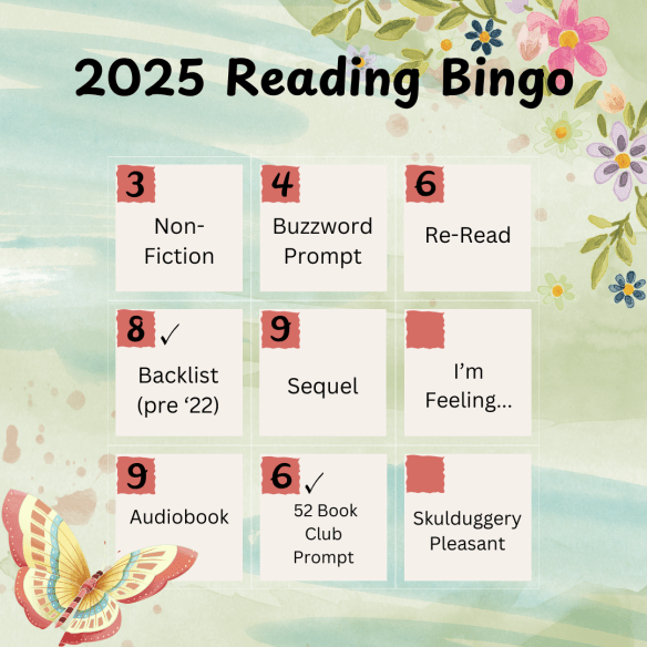 I’ve read 27 books so far in 2025 and I’m sort of realising that my board is maybe too easy… It’s only a quarter of the way through the year, but I’ve completed two squares and well on my way to completing several more.