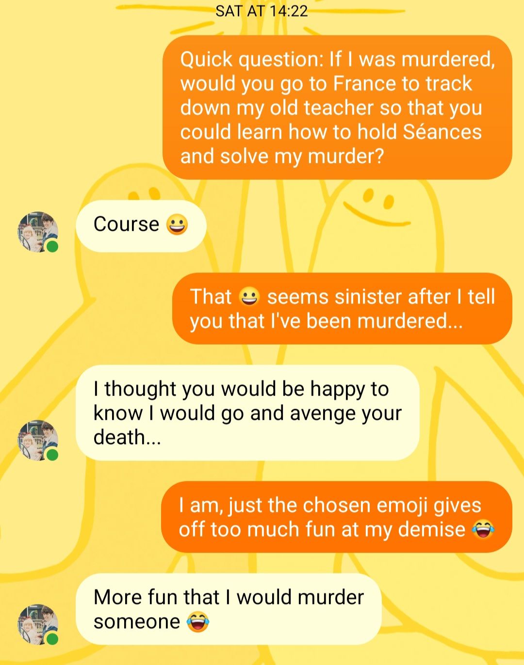 The actual mystery was slow going. We flip between perspectives – that of Lenna and Mr. Morley – the latter being a member of the London Séance Society who enlists Vaudeline’s help. His chapters were somewhat interesting, but meant that certain ‘twists’ felt obvious and underwhelming when we have his insights to everything.