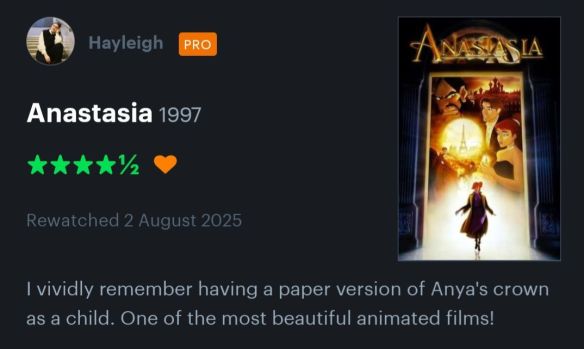 Anastasia is one of my favourite films from childhood! It was a lot of fun re-watching!